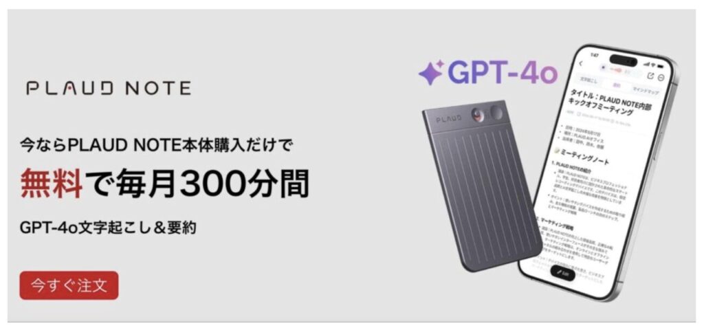 Nicebuild社 PLAUD NOTEは録音・文字起こし・要約ができる、世界で初めてChatGPT-4oを連携したボイスレコーダーです。