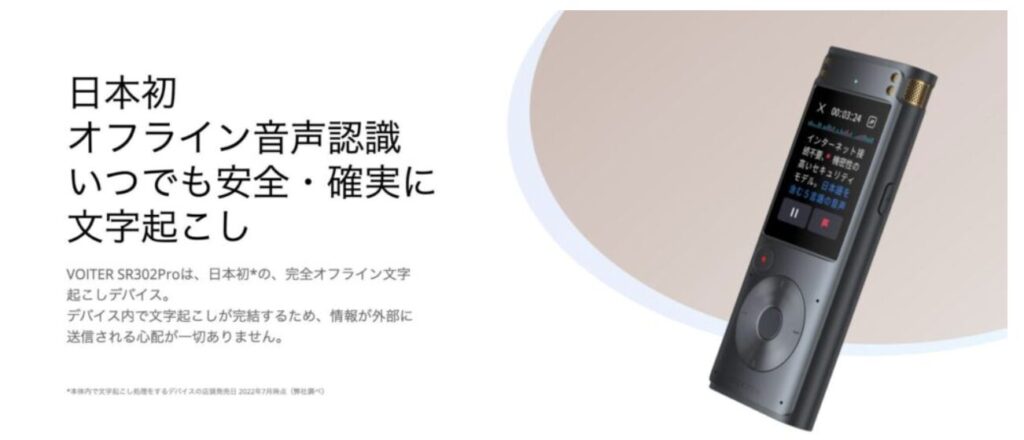 iFLYTEK VOITER SR302Proはアプリなどにデバイスを接続していない、オフラインの状況でも文字起こしできるボイスレコーダーです。