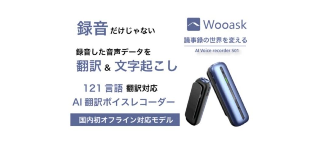 Wooask S01 ボイスレコーダーは、AIが瞬時に翻訳して文字起こしできる最新のボイスレコーダーです。