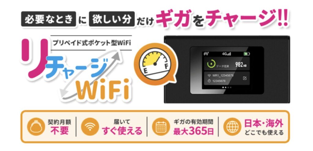 リチャージWiFiは、端末とギガを購入するプリペイド式買い切り型Wi-Fiです。