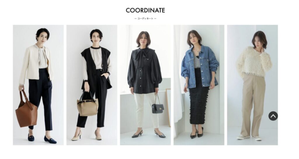 20代から50代の働く女性に特におすすめです。オフィスやビジネスカジュアルに最適なアイテムが豊富で、シンプルながらもトレンドを押さえたデザインが特徴です。また、プライベートでも使えるカジュアルアイテムや、少し特別なシーンに合わせたアイテムも充実しており、さまざまなシーンで活躍します。