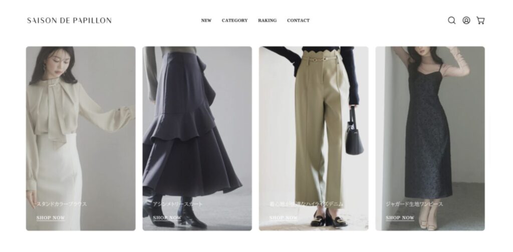 SAISON DE PAPILLONは、シンプルできれいめなファッションがプチプラ価格で購入で きるブランド。