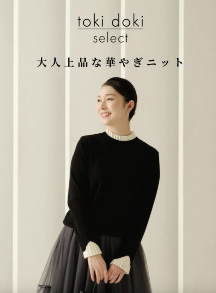 toki dokiは40代後半のオーナーが自分自身の年齢的な悩みからアイテムを作ったブランドです。車移動で使えるきれいめなジャケット、ジャケットを脱いでもきれいなニットなど、着る人目線のアイテムがあります。