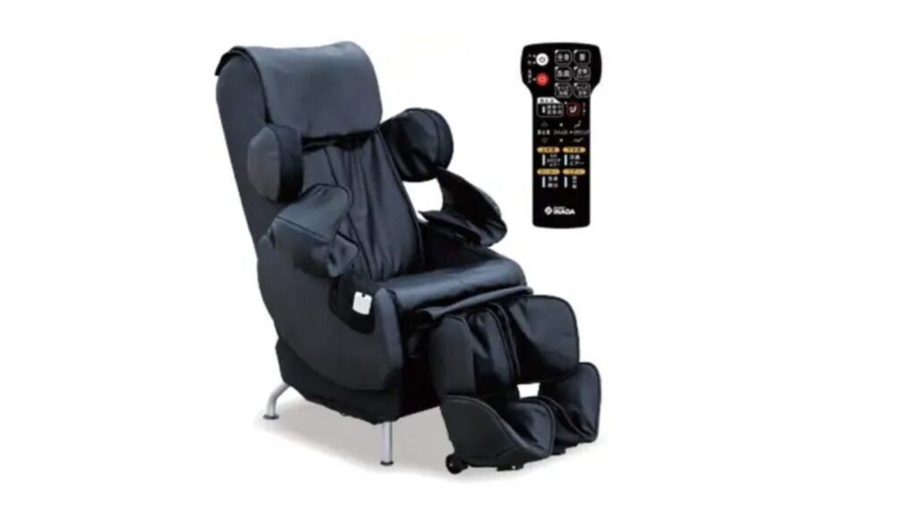 本体はチェアポジション・マッサージポジション・フルリクライニングポジションの3つで切り替え可能。枕や腰部分のクッションには「粒わた」が使われています。自宅でくつろぐ際の椅子としても活用できるモデルです。