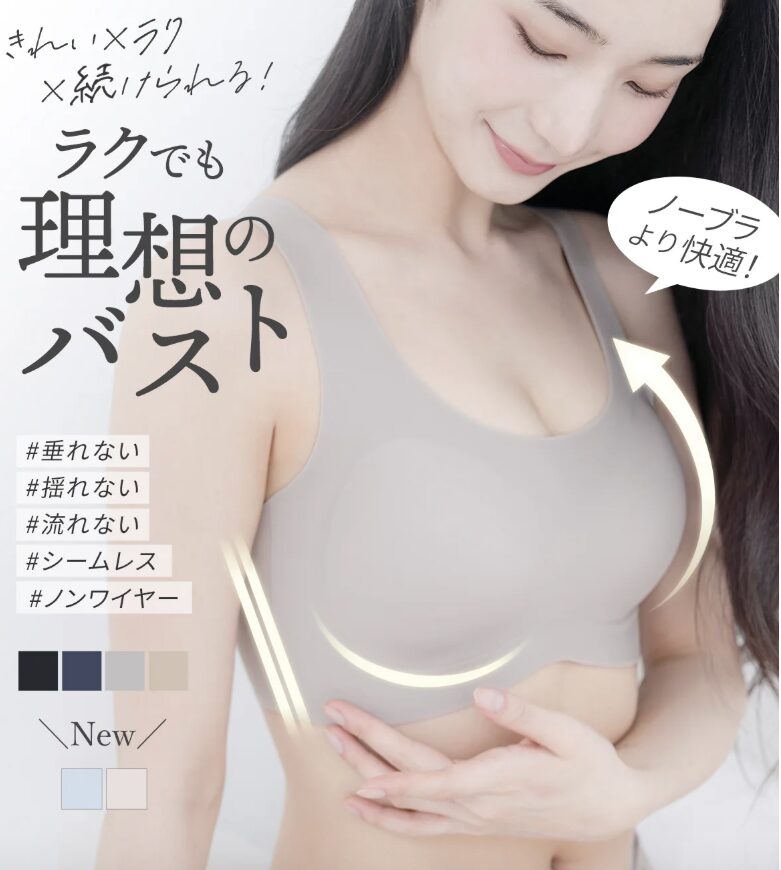 • 特徴: ホックやワイヤー、レースを一切使用せず、3D補正で全方向からケア。